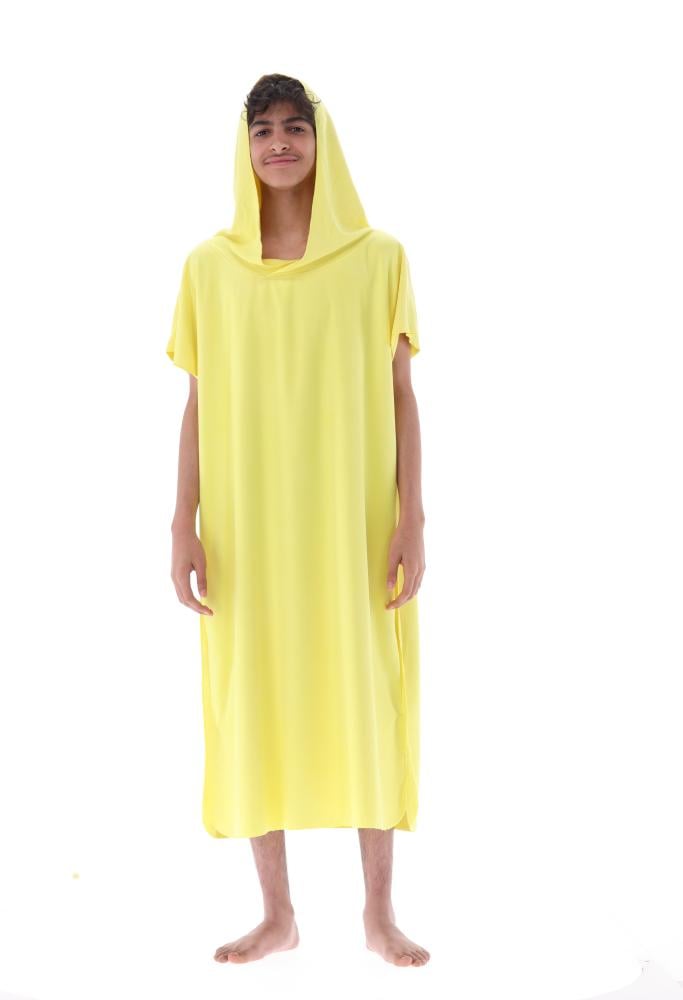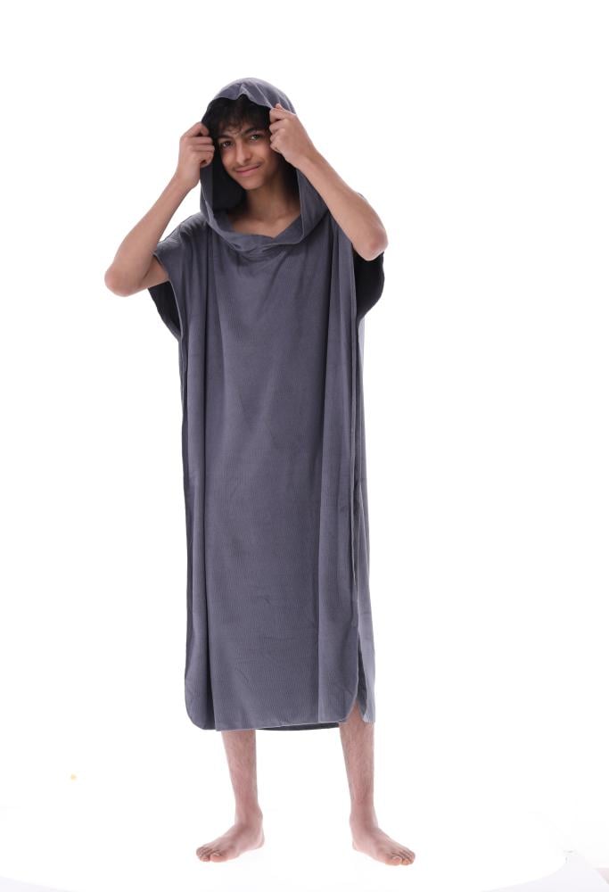 استمتع بالراحة والفخامة مع روب استحمام للسن المحير، روب واسع بغطاء رأس أنيق مصنوع من خامة ويفت عالية الجودة، حصريًا من متجر ار جي في السعودية.